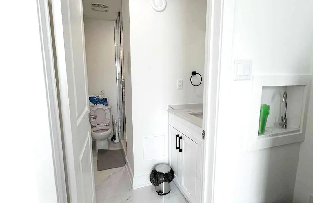 In Modern Private Room Private Bathroom With King Bed With Tv And Balcony Midtown Downtown Toronto zijn een apart toilet en een douche voorzien om uw comfort te vergroten. Daarnaast vindt u er een droger, badjassen en handdoeken.